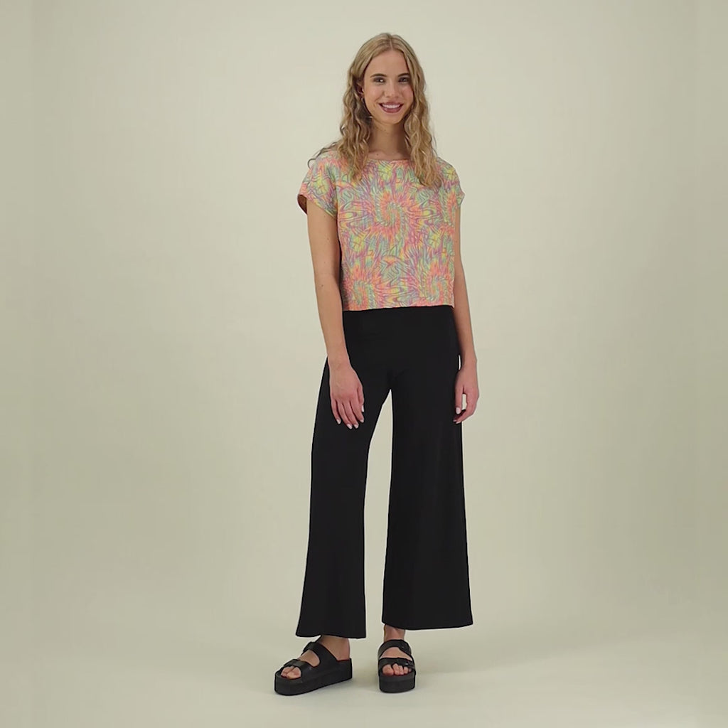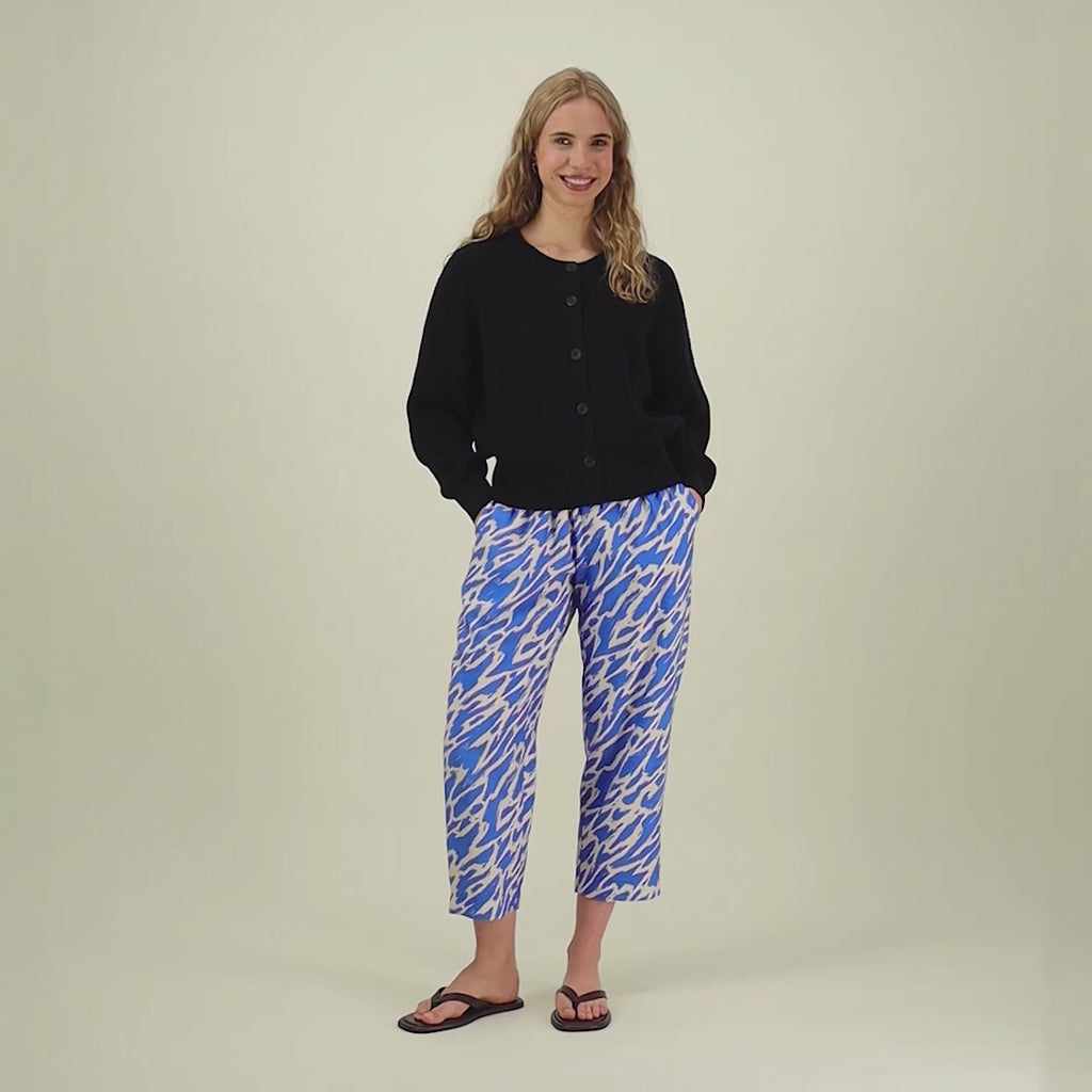 Erittäin siistit ja monikäyttöiset housut. Kannattaa valita kahden koon väliltä mieluummin pienempi, koska käytössä venyvät hieman. Pesussa palautuvat. Napakkaa nättiä kangasta. Housut toimivat sekä siisteinä housuina että kotihousuina, koska ovat nätit ja tyylikkäät mutta supermukavat.