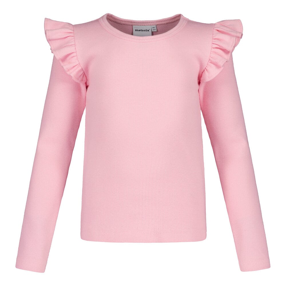 Rib Frilla Shirt Pinkie is a lovely long-sleeved shirt for children that combines a playful look with everyday practicality. The fresh pink shade Pinkie brings a fresh color and joy to the outfit.