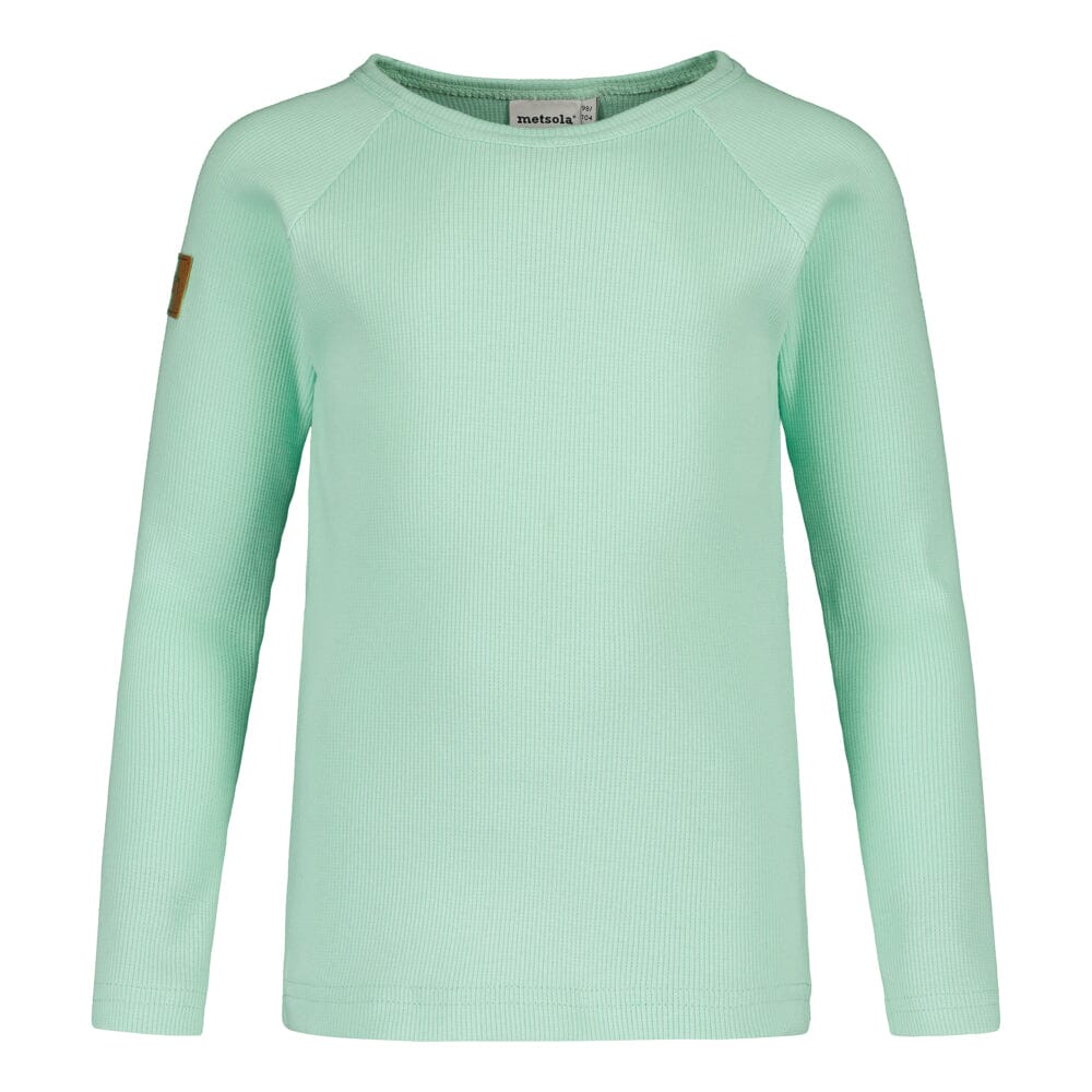 The Mintie ribbed shirt is a lovely long-sleeved shirt for children that combines a playful look with everyday practicality. The fresh mint-colored Mintie shade brings a fresh color and joy to the outfit.