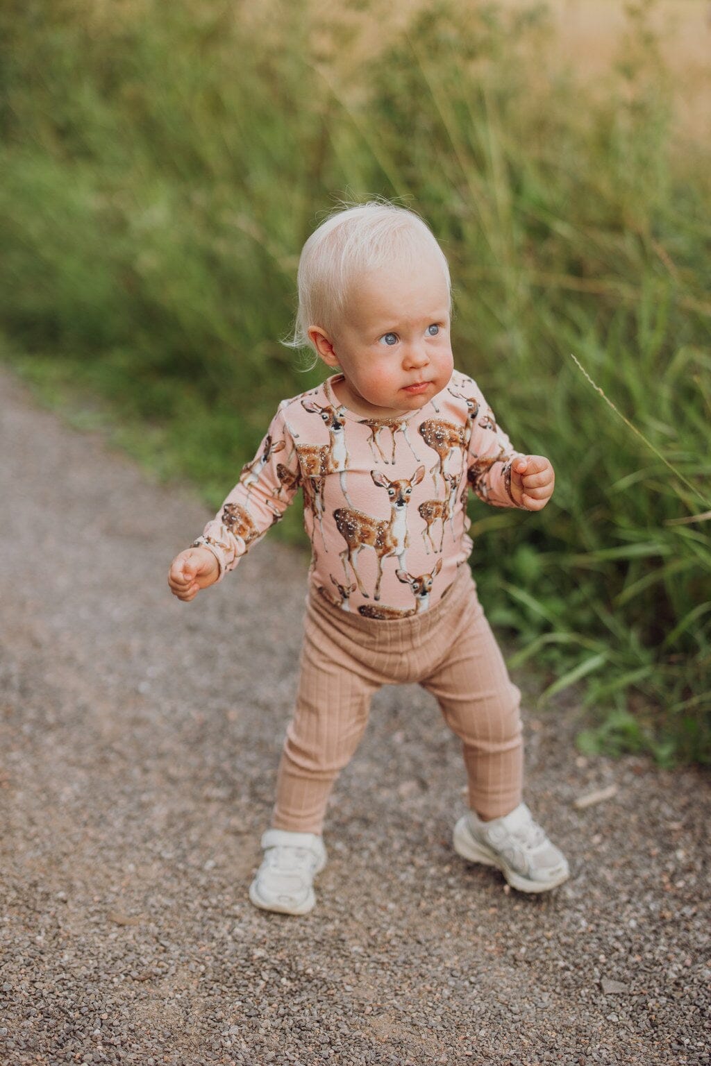 The Bambi bodysuit is a soft and sweet basic garment with a charming pattern. The bodysuit features Henna Adel's beloved Bambi, now on a light peachy background. The gentle feel of the pattern makes this bodysuit an easy-to-combine and timeless choice for baby's wardrobe.