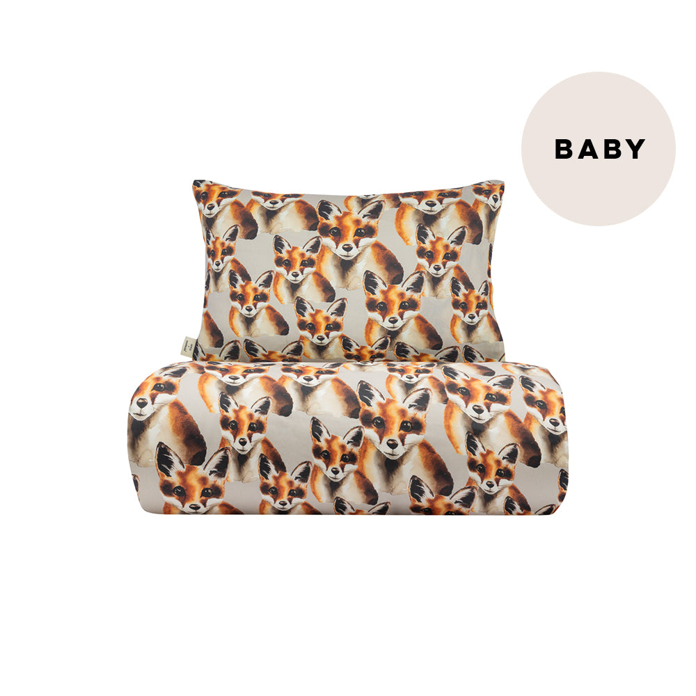 Duvet cover size 80x120cm, pillowcase 40x60cm. The size fits a baby blanket.