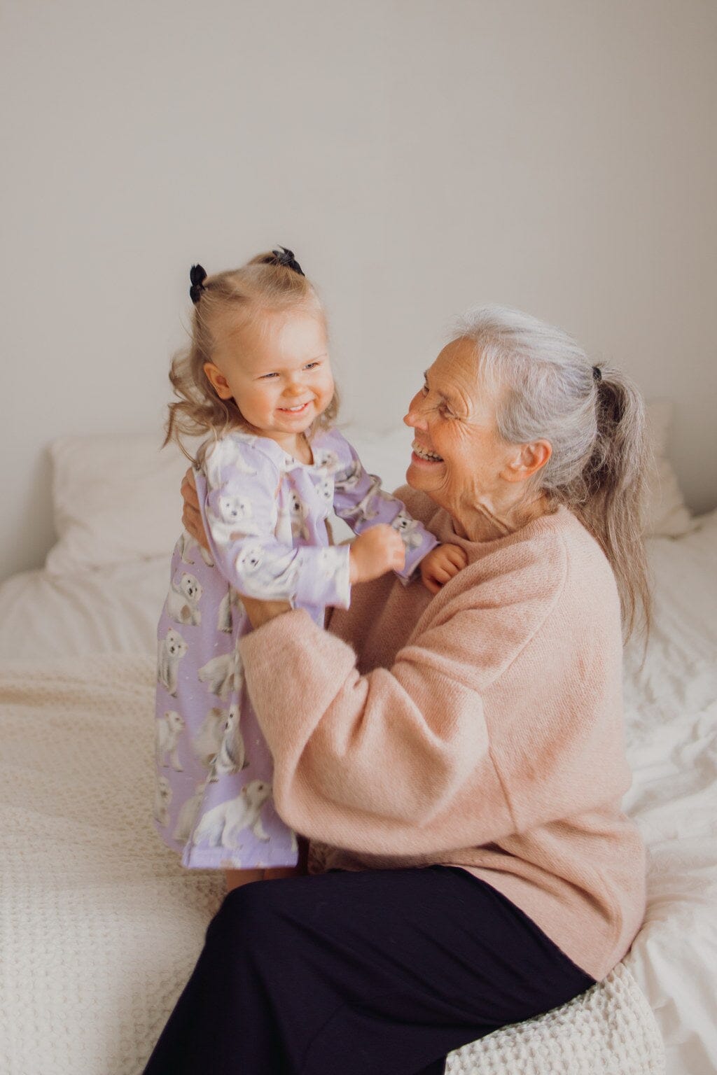 Neidille mummu hommasi yöasun. Aivan ihana kuosi ja pehmeä kangas