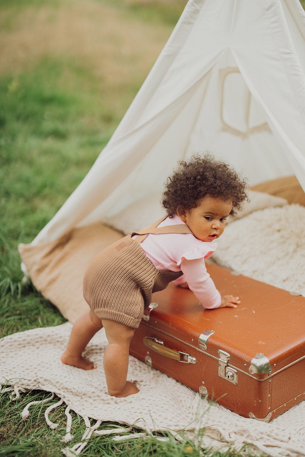 The Cotton Knit Brace Shorts in Nougat are a timelessly stylish and practical choice for baby's clothing. The warm Nougat color brings softness and a classic look to the outfit, which is easy to combine with other Metsola products of the season.