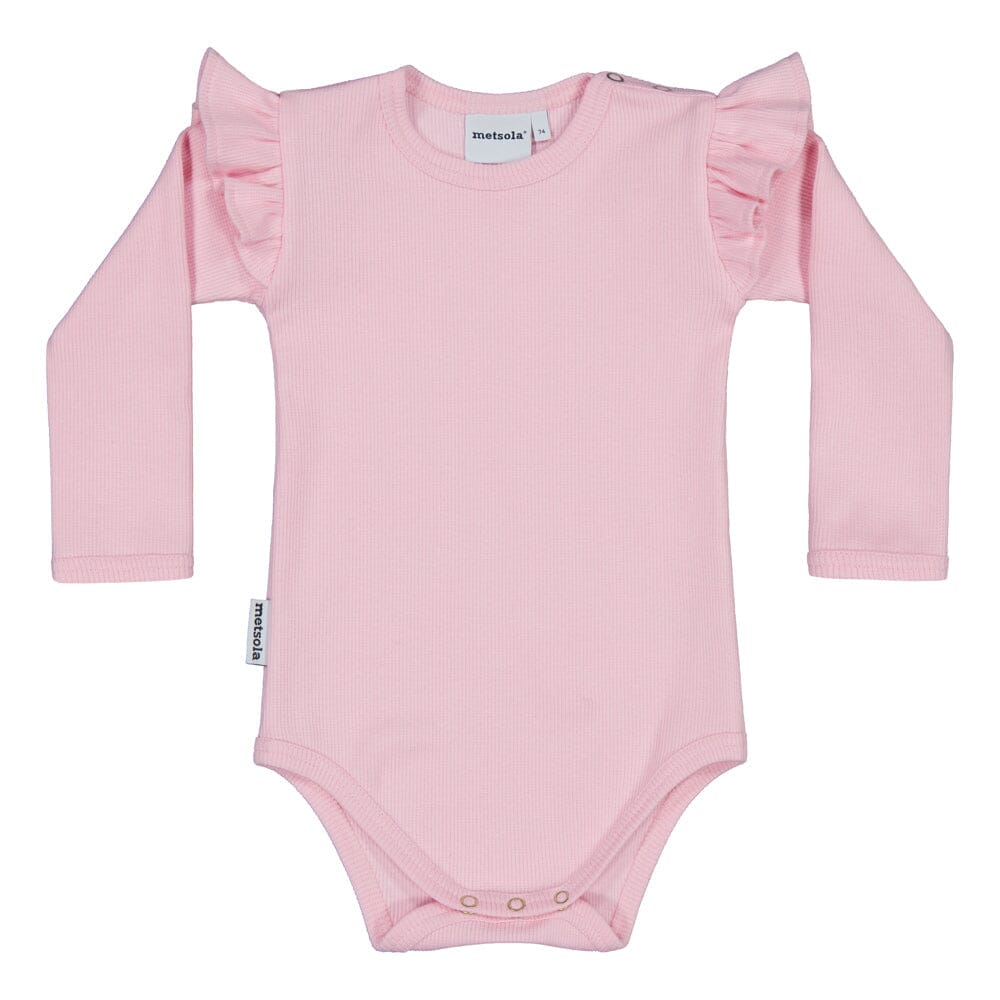 This beautiful Frilla bodysuit combines a stretchy and soft organic cotton rib fabric with a beautiful color scheme. Snaps on the shoulder and crotch make it easy to put on and change diapers. The snug fit stays on well and makes it easy to move around.