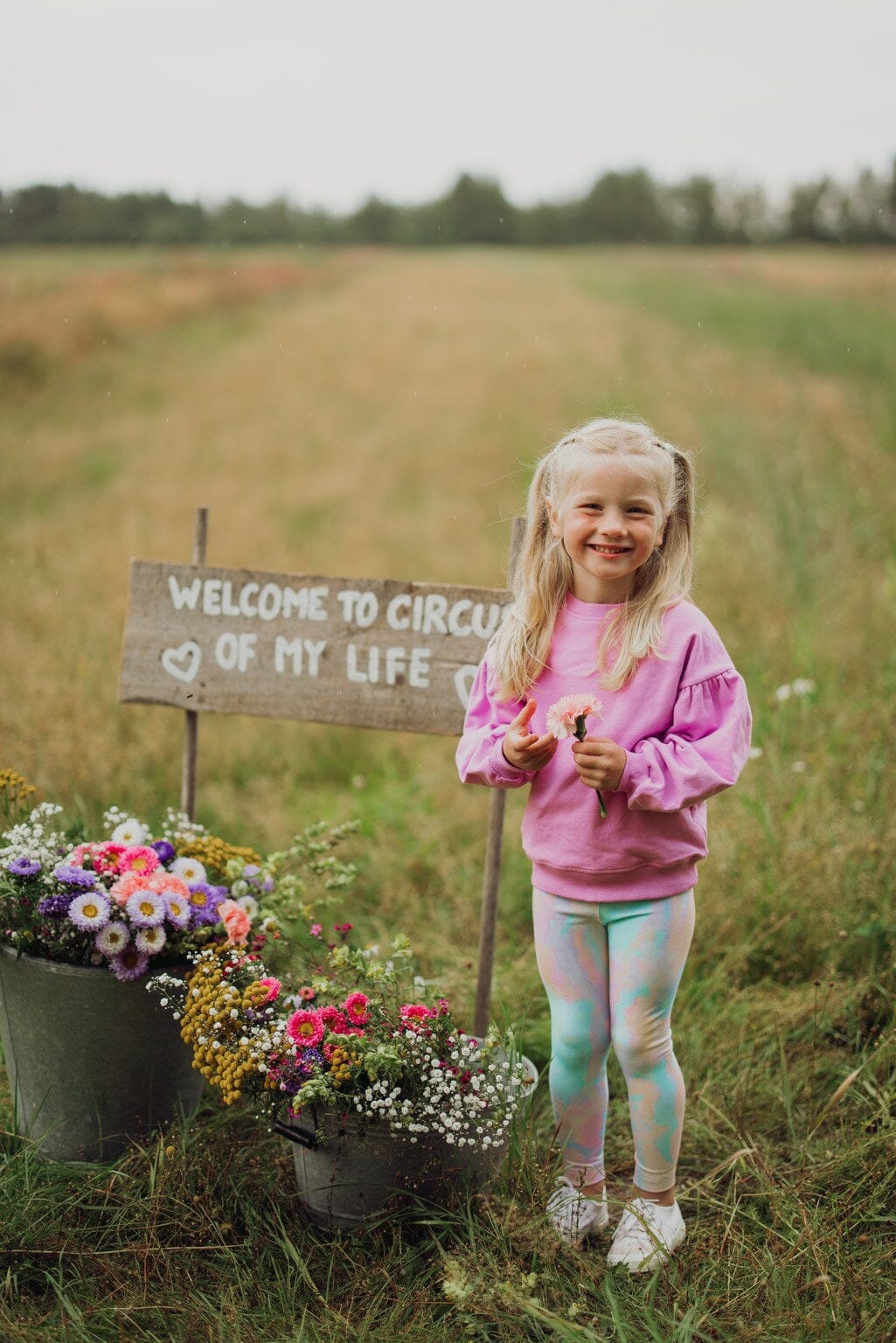 The girl in the picture is 106cm tall and is wearing size 98/104. The measurements in the size chart are approximate. The measurements are +/- 1cm accurate.
