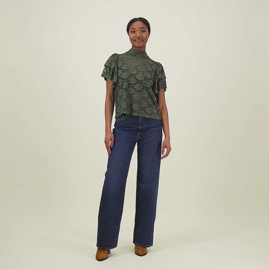The Frill Lace Top in greenery is the perfect choice when you're looking for something special - whether it's a party, a night out or a little something extra for your everyday life.