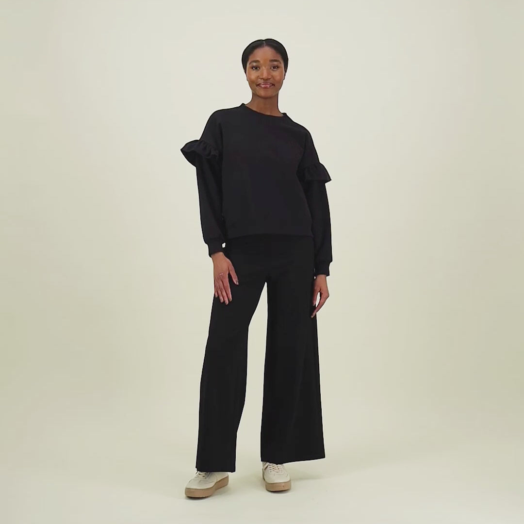The stylish and timeless black Frill Sweater in Licorice is the perfect choice when you want to combine everyday comfort with a polished, feminine look. This sweatshirt features charming frill details on the sleeves, which add playfulness and light movement to the outfit - a small detail that makes a big impact.
