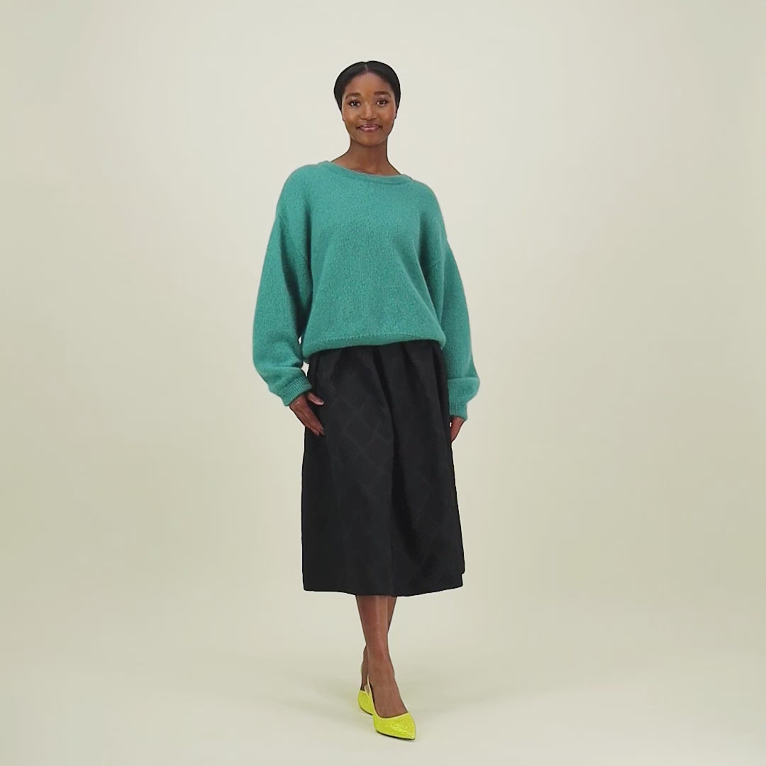 The Jacquard Skirt in Licorice is a timeless, elegant choice where festiveness meets sophisticated minimalism. This midi skirt from the Can you hear me? collection is designed for occasions when a touch of elegance is needed - without excessive embellishment.