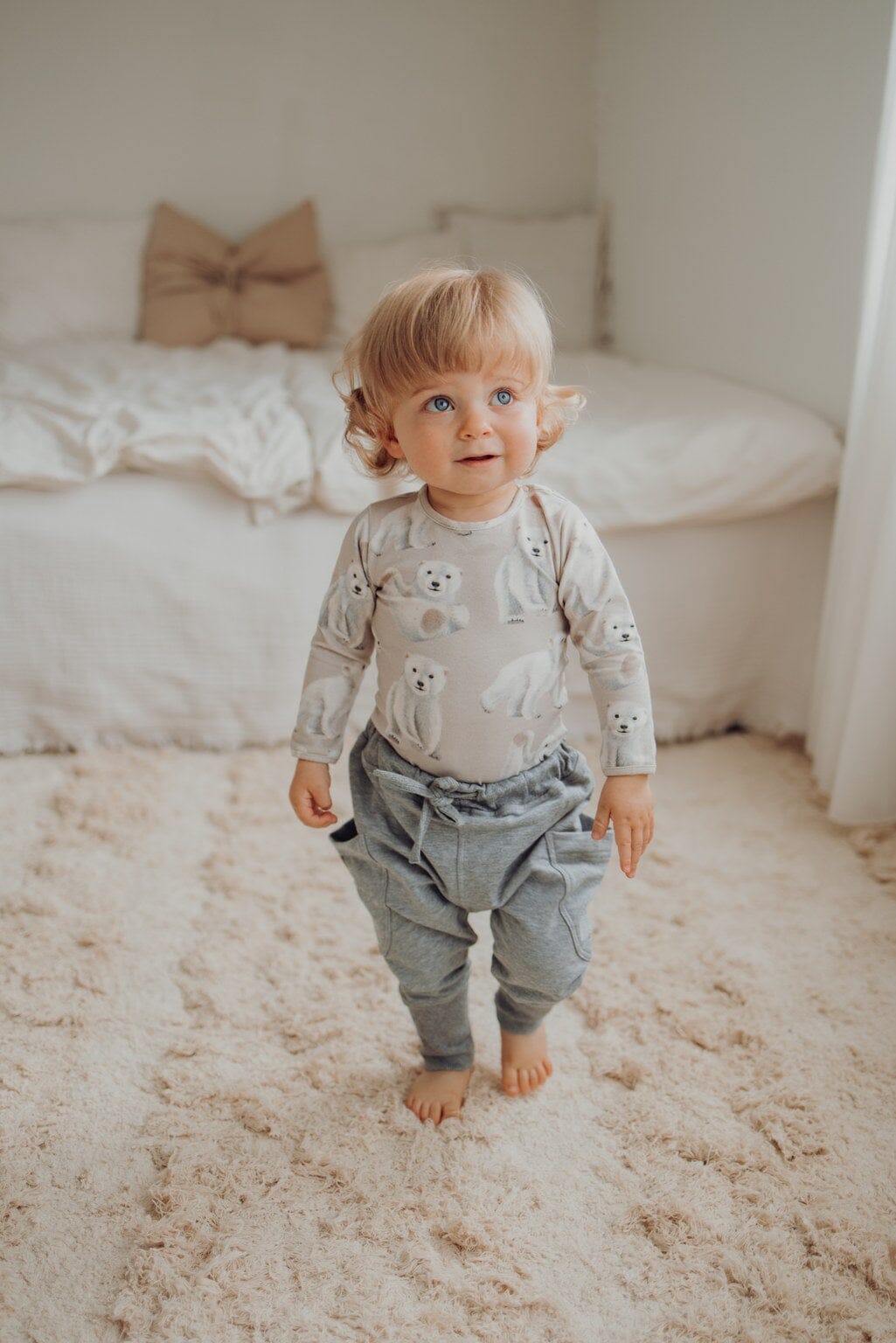 The model in the picture is 78cm tall and is wearing a size 74/80. The measurements in the size chart are approximate. The measurements are +/- 1cm accurate.