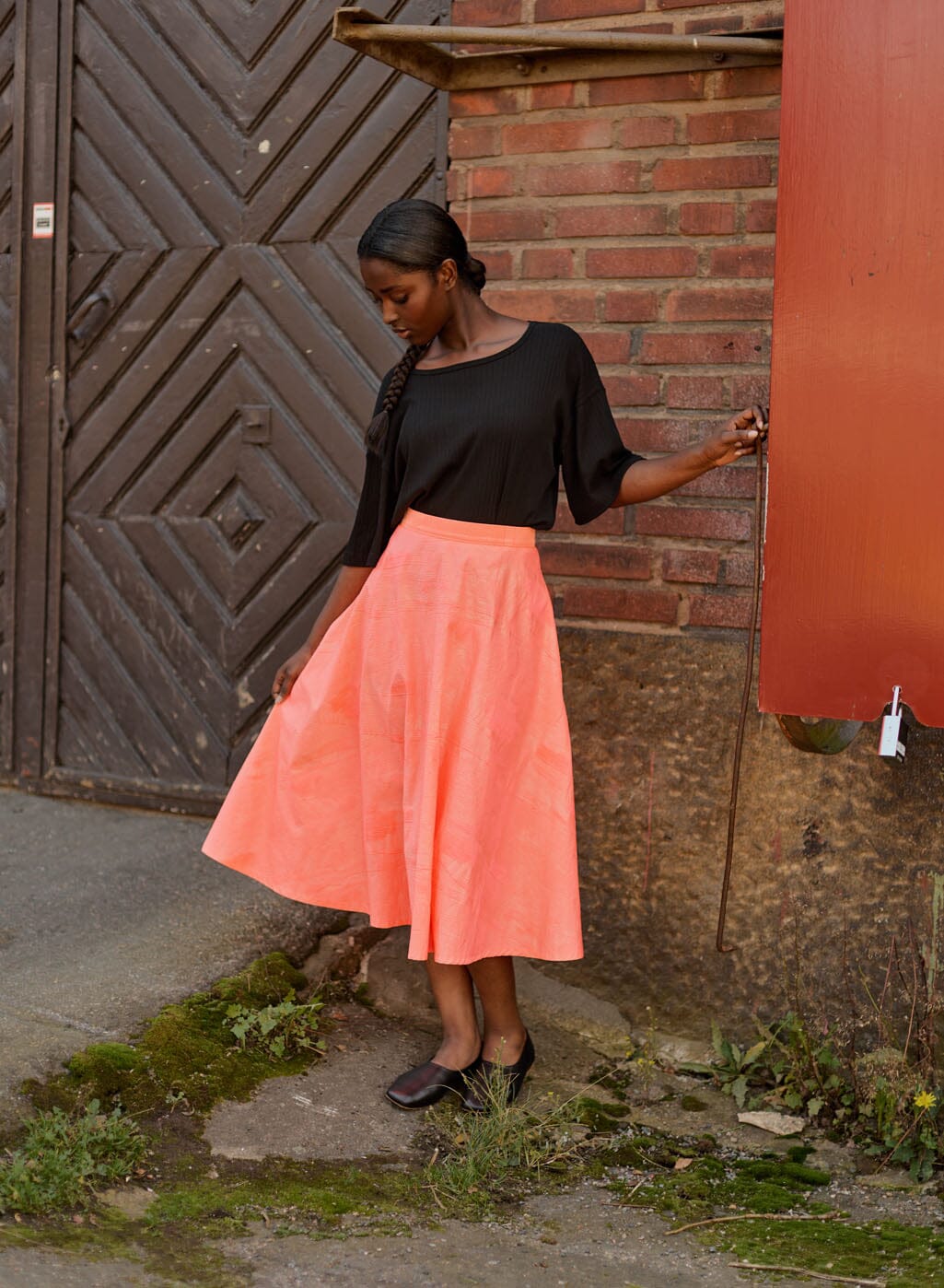 The Jacquard Circle Skirt brings a touch of celebration and playfulness to your style at a glance. The delicious neon pink shade and Italian jacquard fabric create a unique combination of boldness and sophistication.