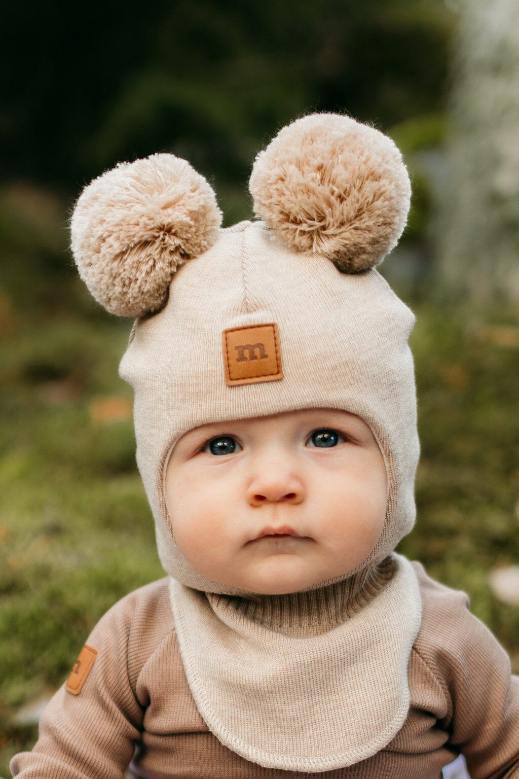 This merino wool helmet keeps your little one warm and there are adorable pompoms on the top of the head. Made in Finland.