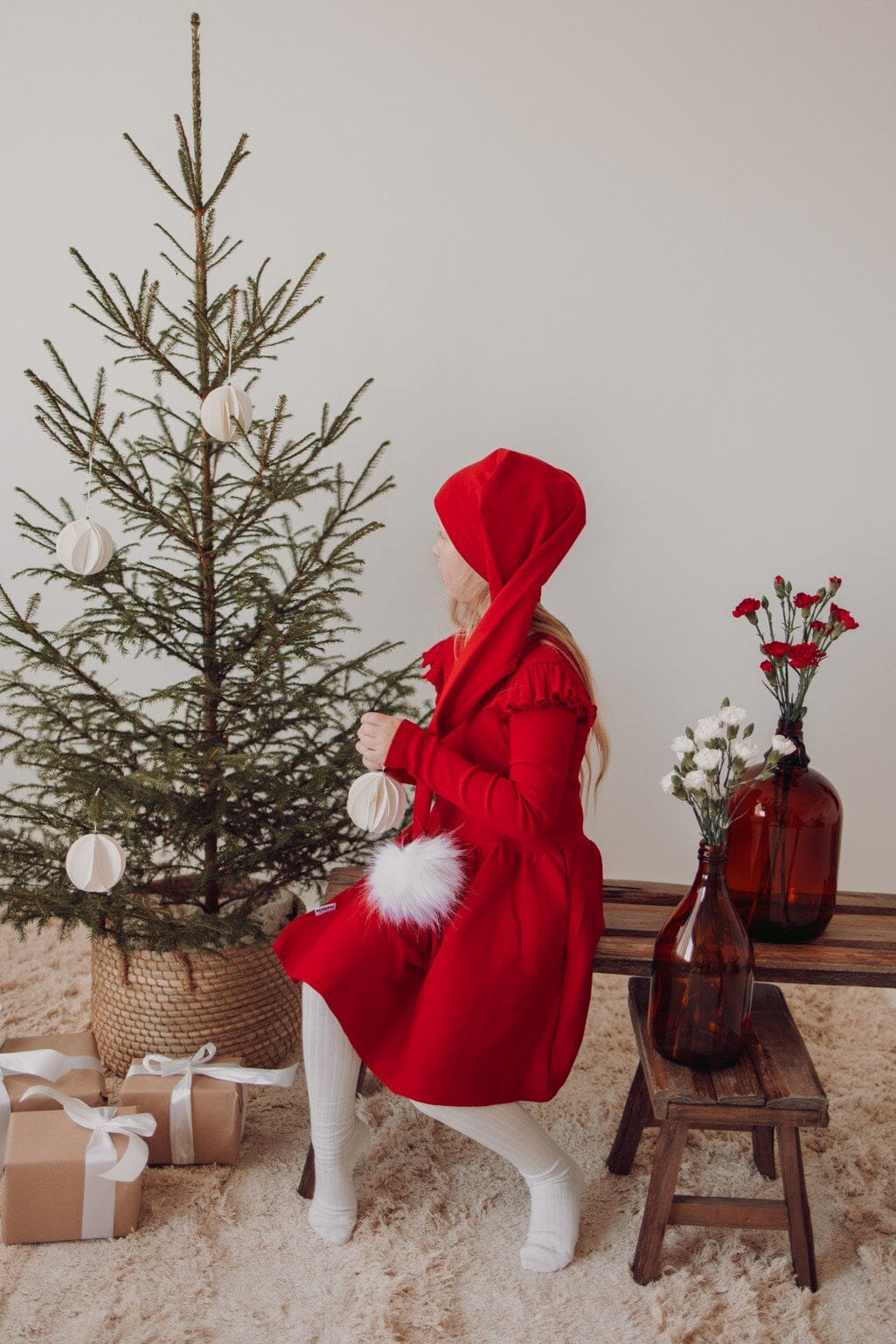 The Poppy shade is a cheerful and warm red that effortlessly brings out the Christmas spirit. This dress is part of the Under the Same Moon collection.