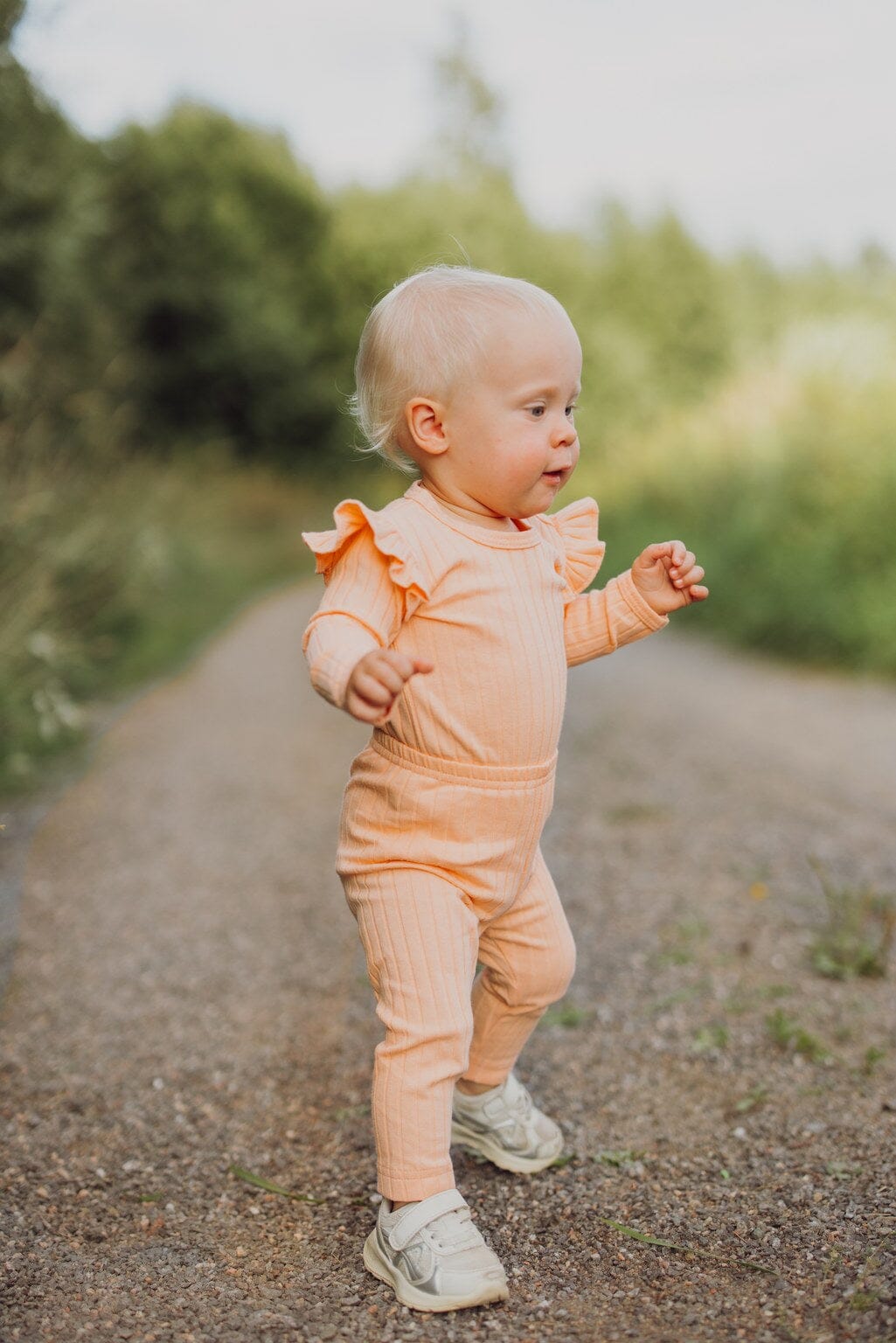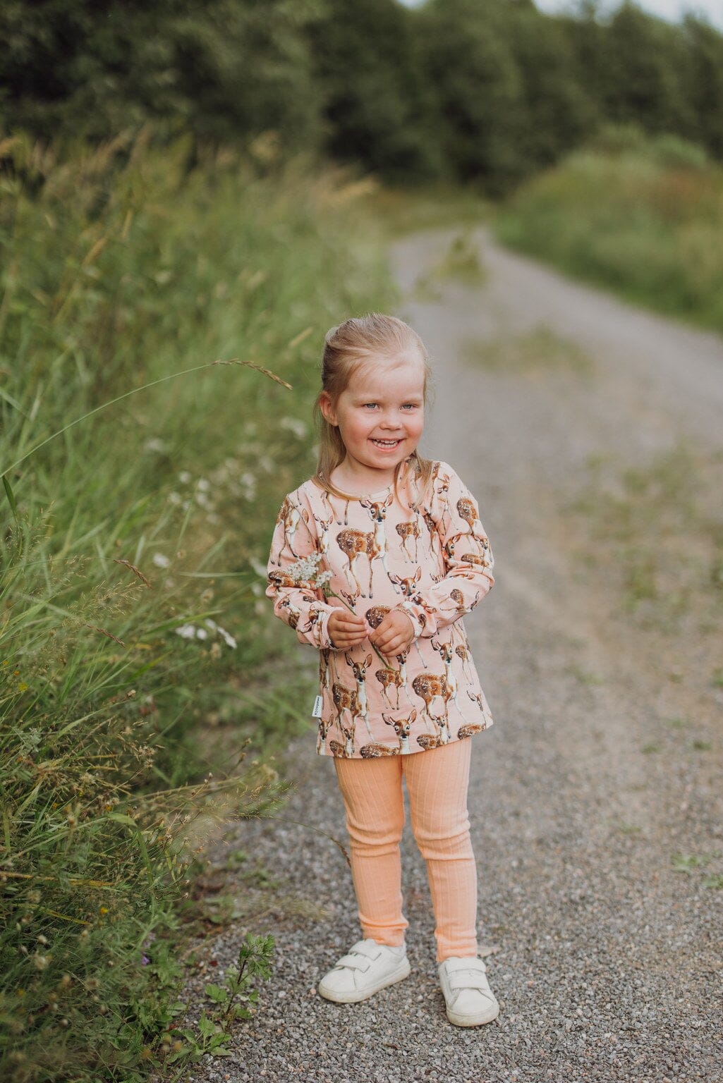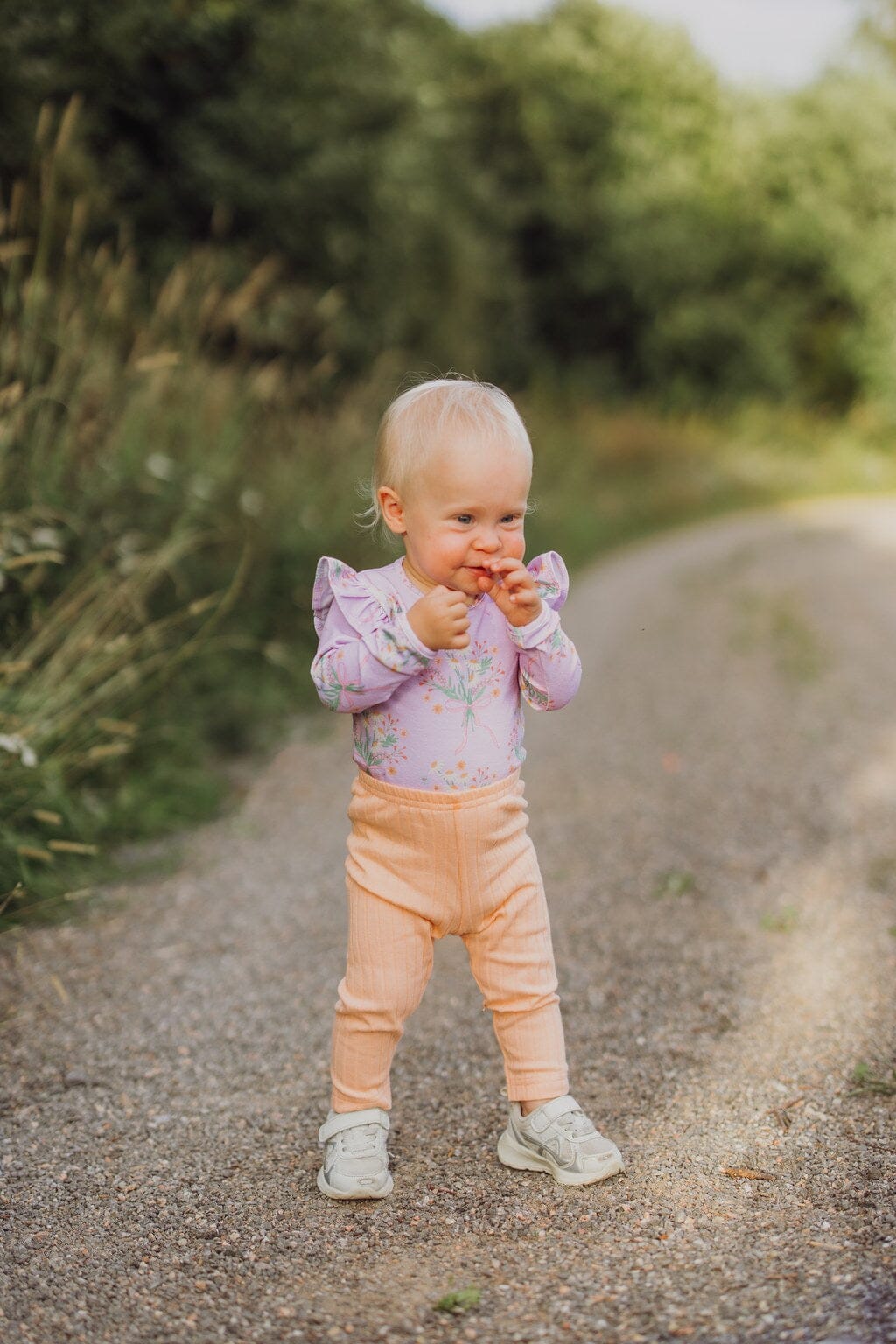 Wide Rib Leggings are charming in a delicious peachy shade. This shade brings lightness and warmth to an outfit - like a breath of joy when worn. These children's leggings are made of a new, striking wide rib material, which is cotton-based and comfortably stretchy, but still holds its shape excellently. The leggings are part of the Days Like These collection, which brings fresh new items and inspiring details to your wardrobe.