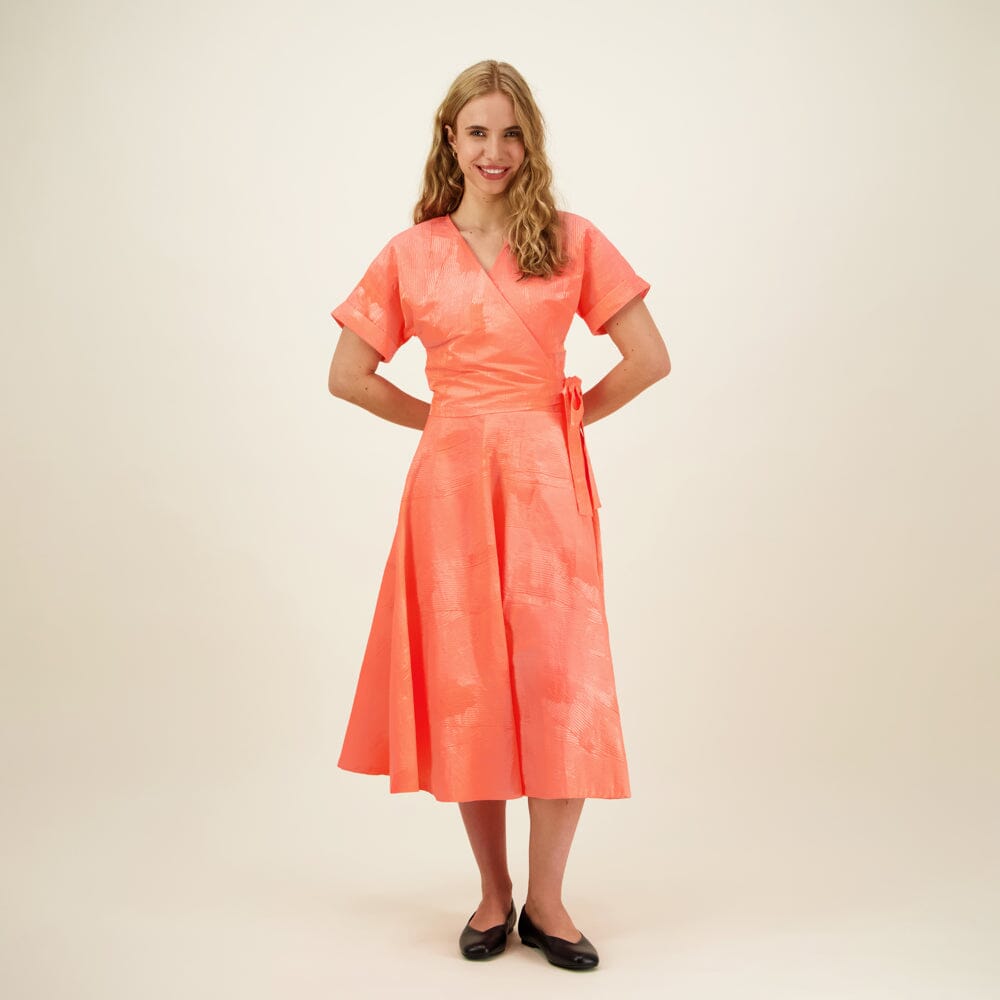 The Jacquard Wrap Top is a real eye-catcher that seamlessly combines showiness and elegance. Made from jacquard fabric woven in Italy, the shirt sparkles in a delicious neon pink shade that exudes confidence and boldness.