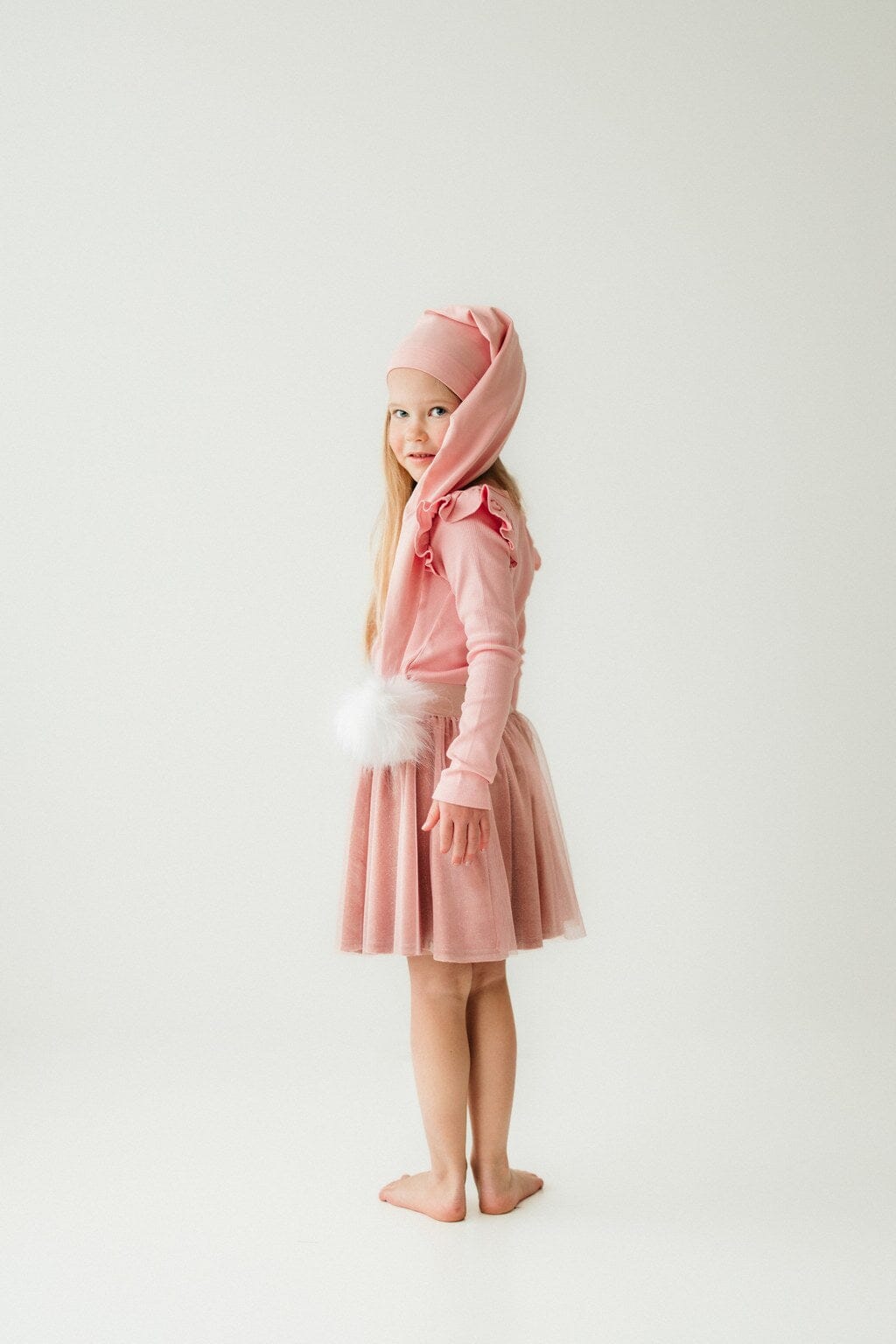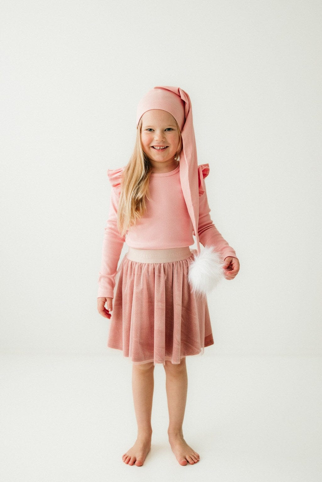 The X-mas beanie is available in three different shades; red Poppy, light pink Peony and light brown Muddy boots. Pair the X-mas beanie with the garments from our Christmas collection and you will get a lovely outfit for Christmas celebrations,